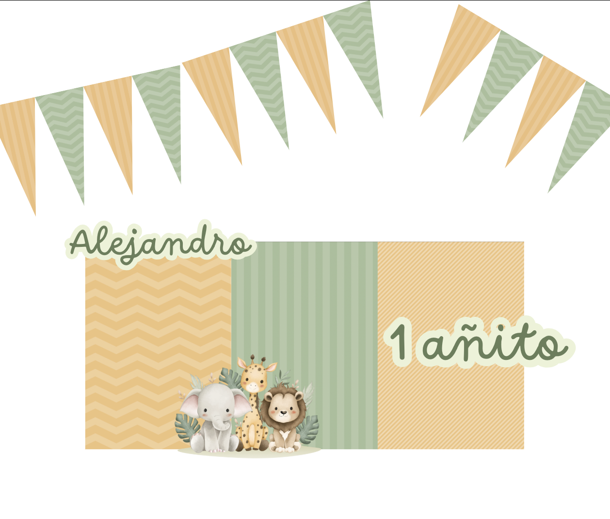 Incluye 3 carteles, 3 figuras decorativas y banderines